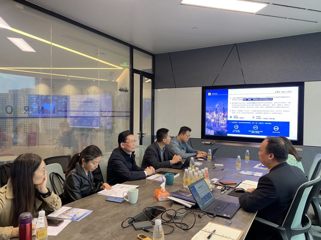 張錫平副會長一行首先參觀了工智道數字化展廳,并觀看工智道安全管理平臺演示。隨后雙方就工業互聯網技術發展賦能化工行業,政府和協會做好化工企業服務工作以及發揮異工同智在化工數字化中所起到的橋梁、引領作用進行深入溝通交流。