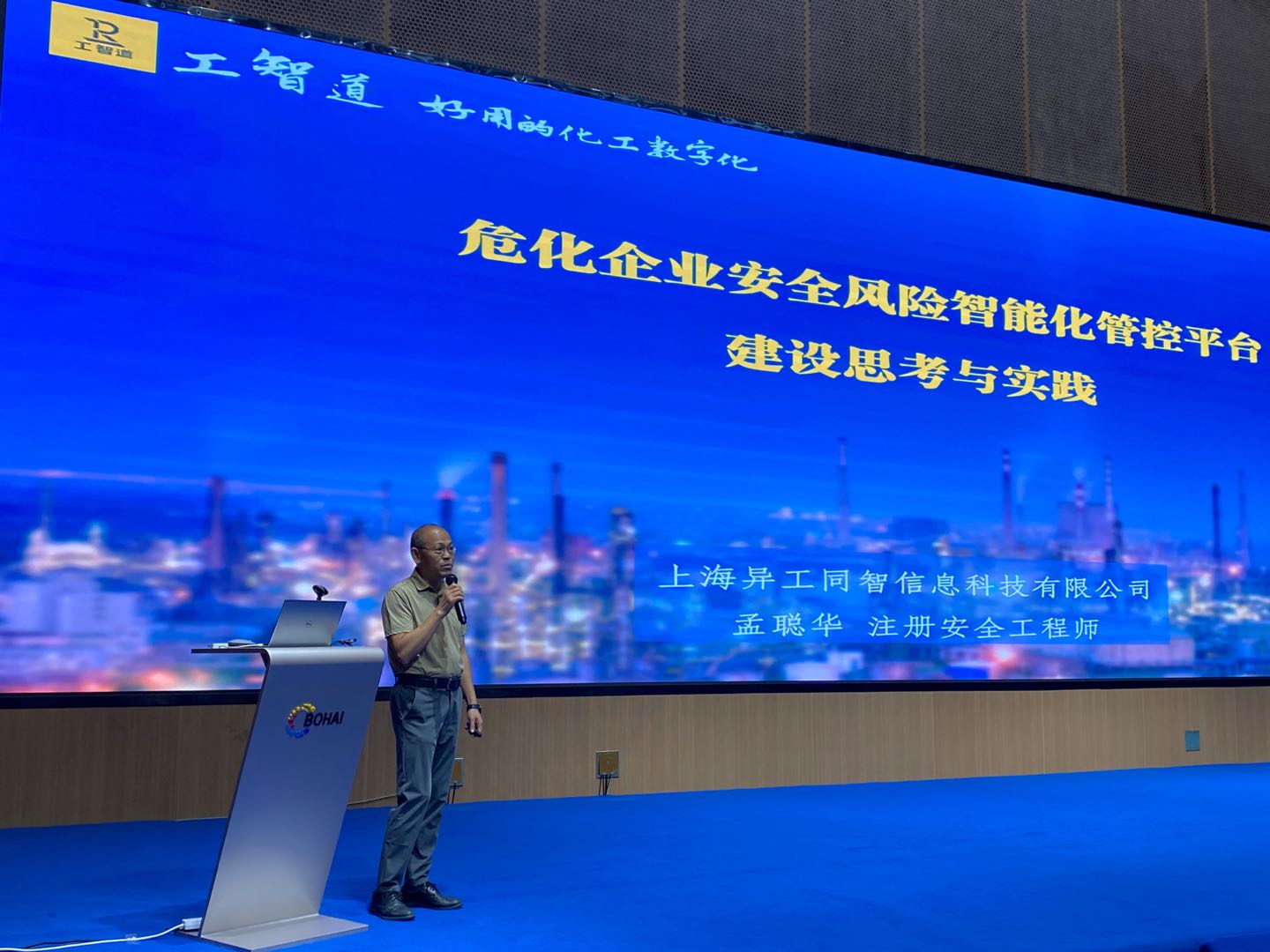 大會交流環節,工智道南方區銷售總監、注冊安全工程師孟聰華以《?;髽I安全風險智能化管控平臺建設思考與實踐》為題做了分享。