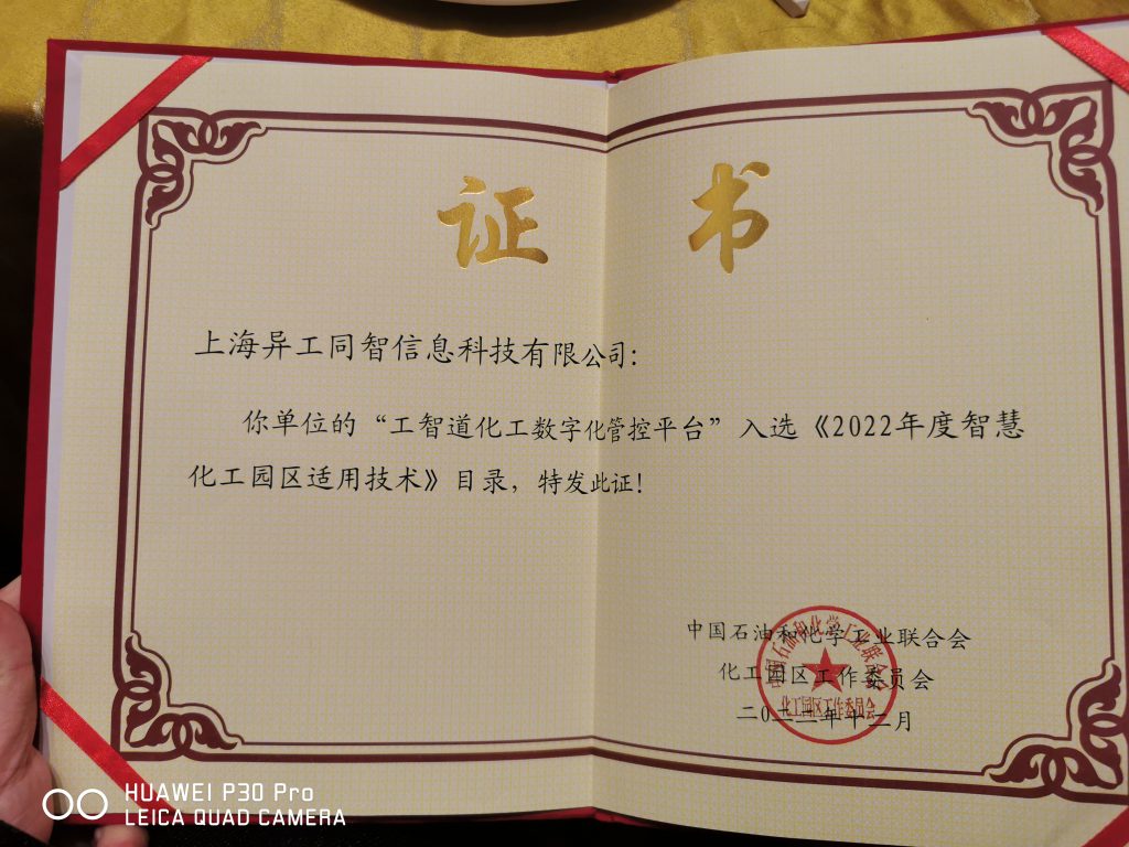 會上舉行了2022年(第二批)智慧化工園區適用技術目錄發布儀式。工智道化工數字化管控平臺入選。