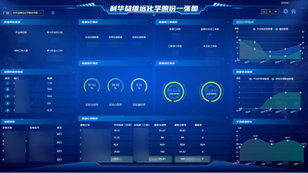 利華益維遠化學股份有限公司,成立于2010年12月23日,目前已建成投產70萬噸/年苯酚丙酮、24萬噸/年雙酚A、13萬噸/年非光氣法聚碳酸酯、10萬噸/年異丙醇產能,是國內首家擁有“苯酚、丙酮—雙酚A—聚碳酸酯”全產品、全產業鏈的企業?;谄髽I信息化安全管理需求,工智道為其打造了集安全生產風險監測預警、雙重預防機制、特殊作業全過程信息化管理、安全生產全要素管理、設備管理、智能巡檢、訪客管理等一體的信息化管理平臺,為企業安全生產數字化賦能。