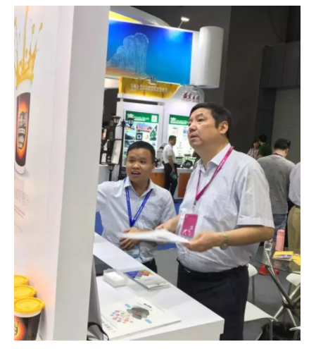 與會期間,上海市經信委戎之勤副主任到展臺參觀,并詢問企業發展情況。